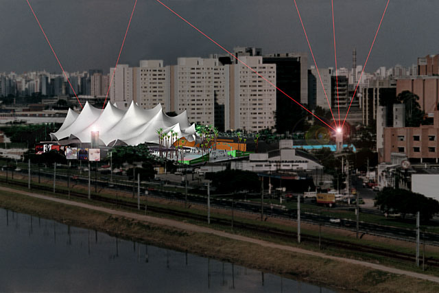 The Paradise Pavilion is a 5,000 seat amphitheater planned for Sao Paolo, Brazil for jazz, rock reggae and pops concerts. In addition, the facility will host parties and conventions. The site is on 17,000 sq. meter presently containing an indoor tennis pavilion with 6 courts, a gym, swimming pools, exercise rooms, lockers and administrative offices. These existing facilities are planned to be partially removed, renovated and expanded for the new facility. The idea behind this venue, according to the promoter is in addition to its flexibility "developing the breezy tropical vibe of tensile structures which relate to the Latin American culture."